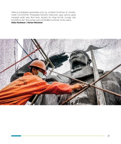 Pekerja melakukan perawatan patung Jenderal Sudirman di Jakarta,