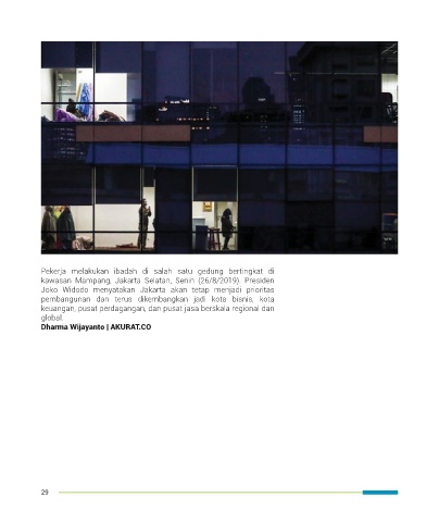 Pekerja melakukan ibadah di salah satu gedung bertingkat di