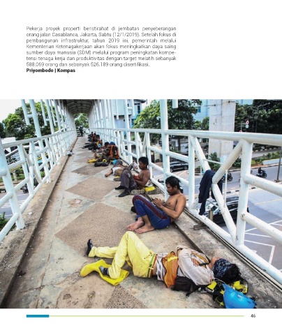 Pekerja proyek properti beristirahat di jembatan penyeberangan