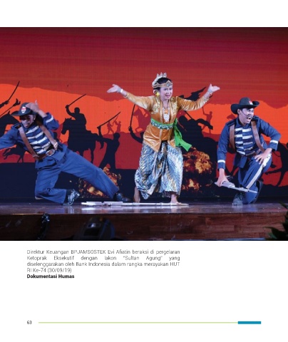 Direktur Keuangan BPJAMSOSTEK Evi Afiatin beraksi di pergelaran Ketoprak Eksekutif dengan lakon “Sultan Agung” yang diselenggarakan oleh Bank Indonesia dalam rangka merayakan HUT RI Ke-74 (30/09/19) Dokumentasi Humas 63